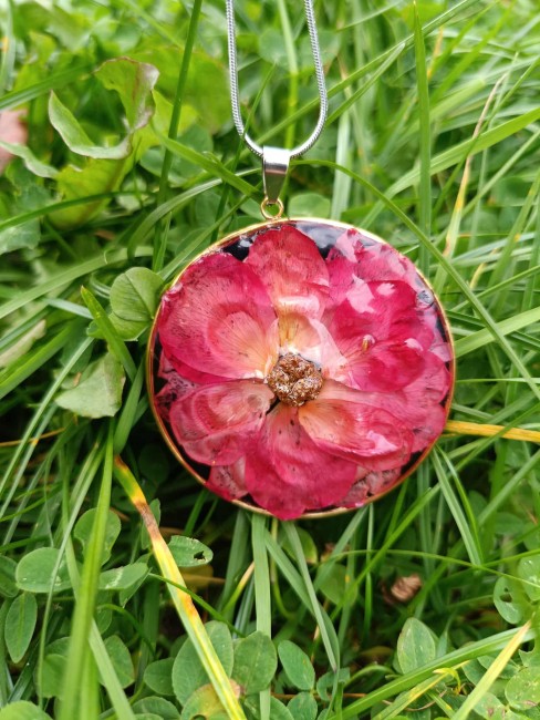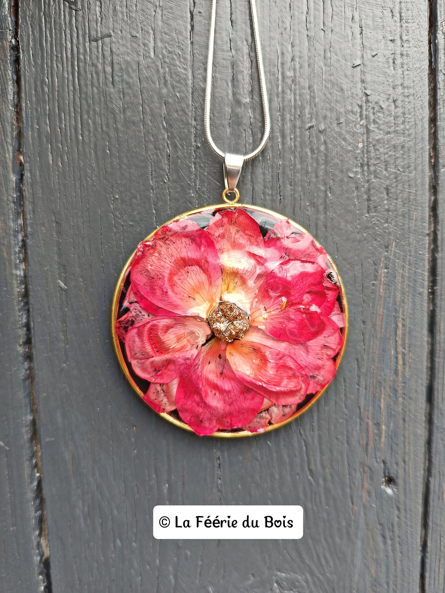 c'est un Magnifique pendentif en pétales de roses véritables fait par mes soins.