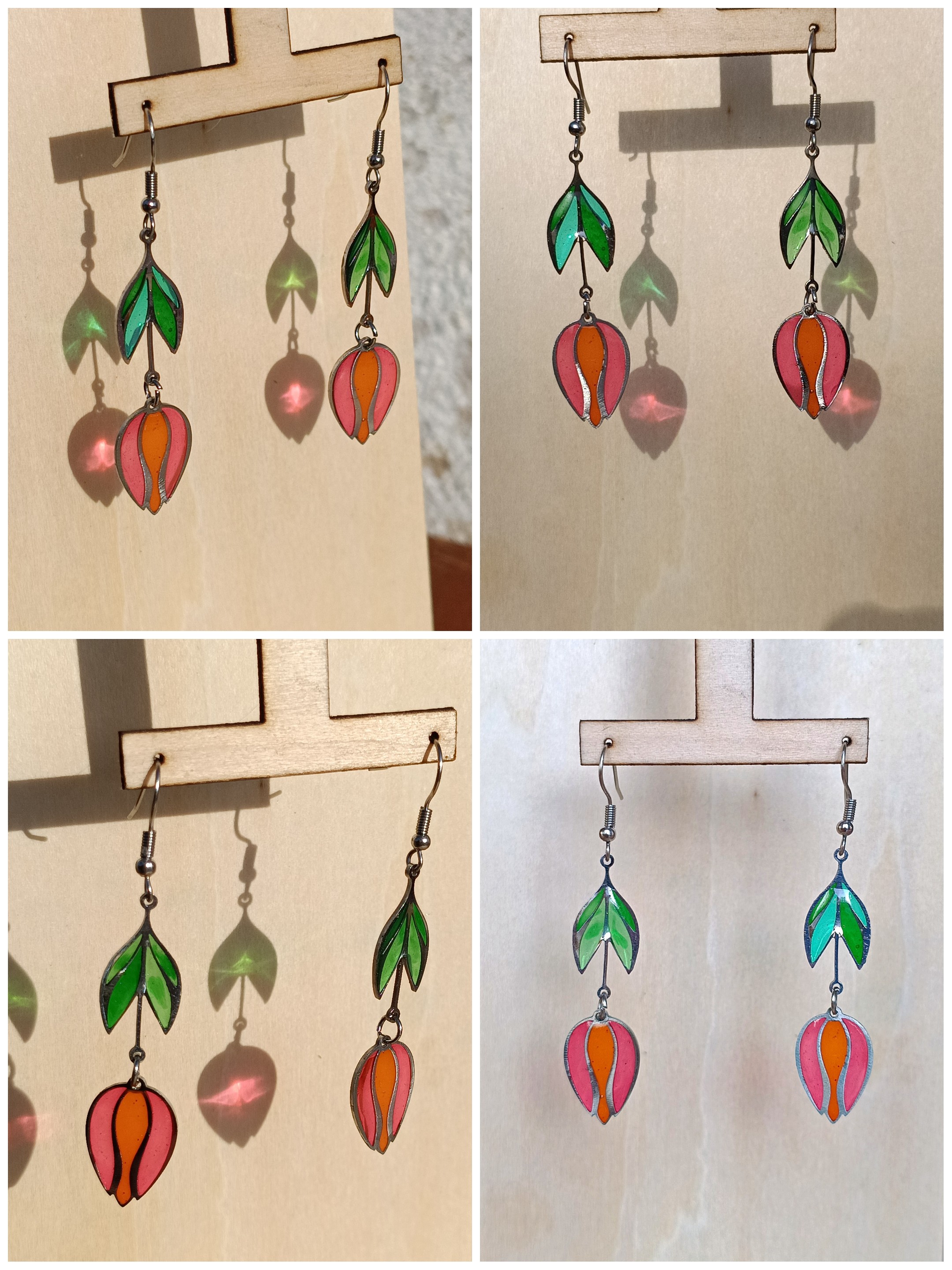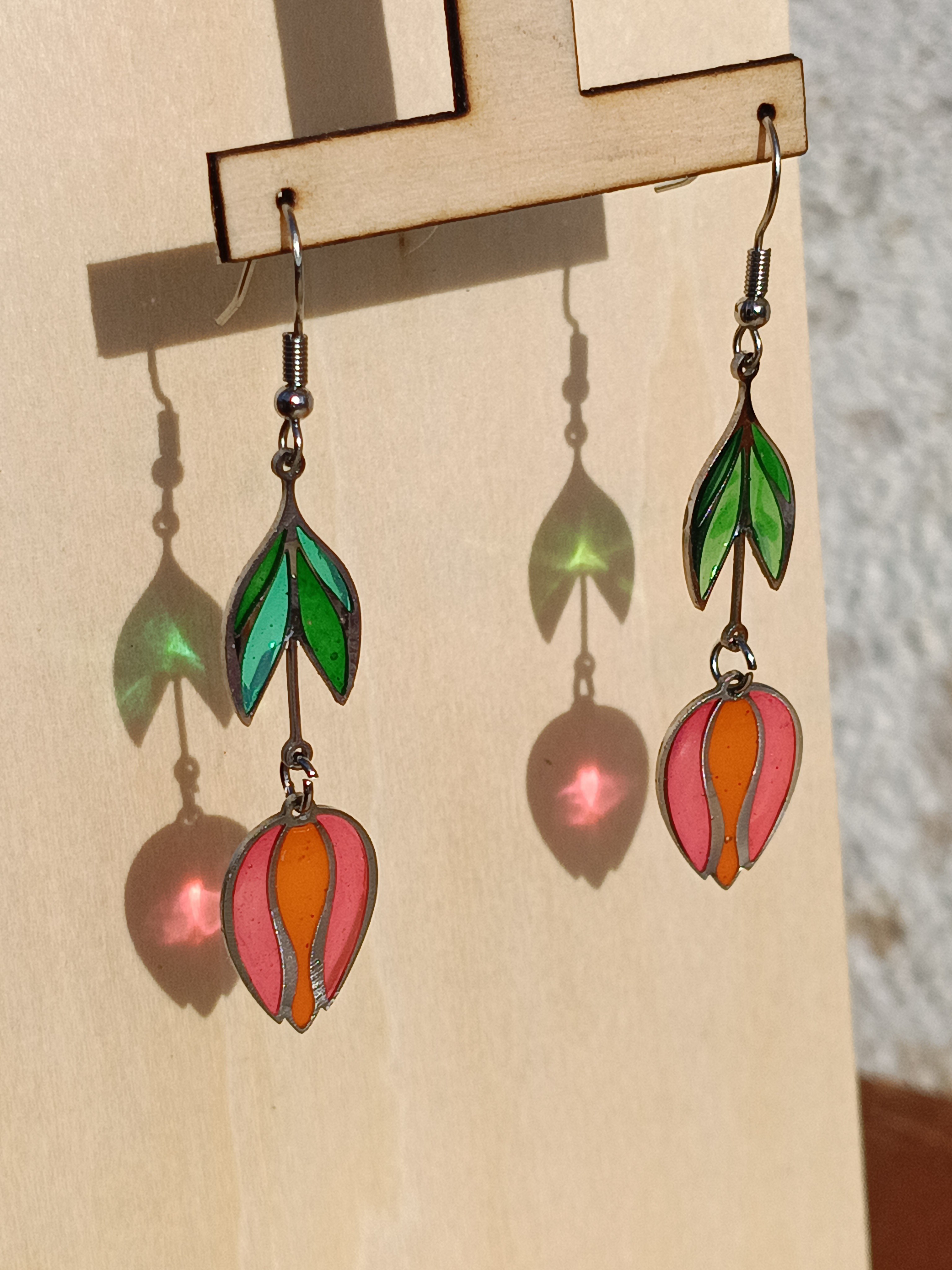 Les Tulipes rouges- Collection Vitrail - Boucles d'Oreilles by La Féérie du Bois - Cadeau Artisanal