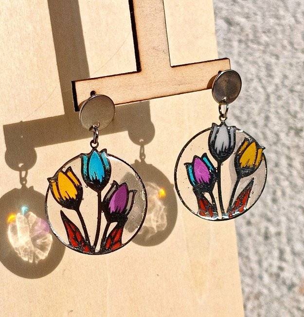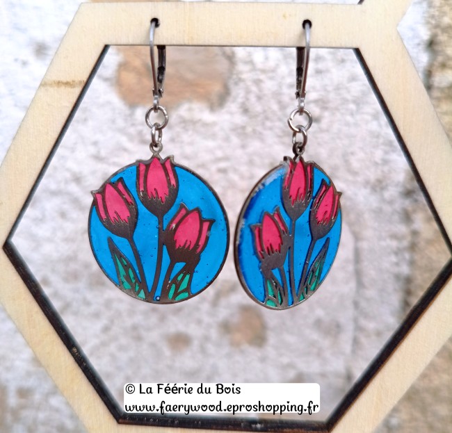Bouquet Tulipes #2- Collection Vitrail - Boucles d'Oreilles by La Féérie du Bois - Cadeau Artisanal