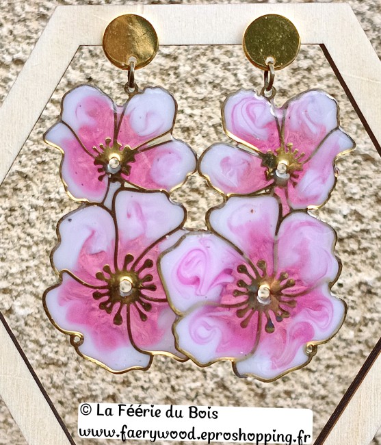 Boucles d'Oreilles Rose- Collection Florale- Idée Cadeau - by La Féerie du Bois