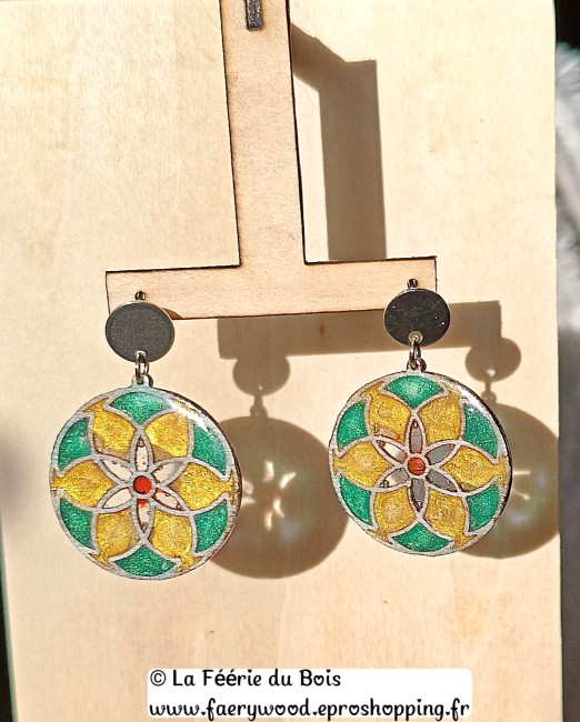 La Fée #2- Collection Vitrail - Boucles d'Oreilles by La Féérie du Bois - Cadeau Artisanal