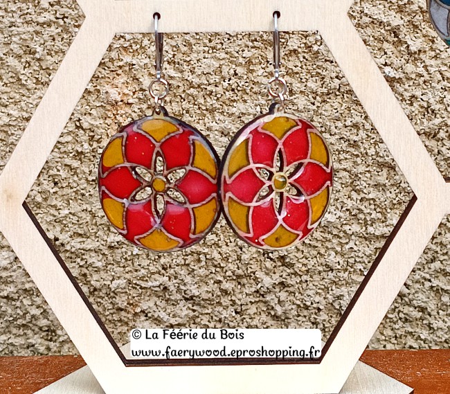 Fleur Papyrus- Collection Vitrail - Boucles d'Oreilles by La Féérie du Bois - Cadeau Artisanal