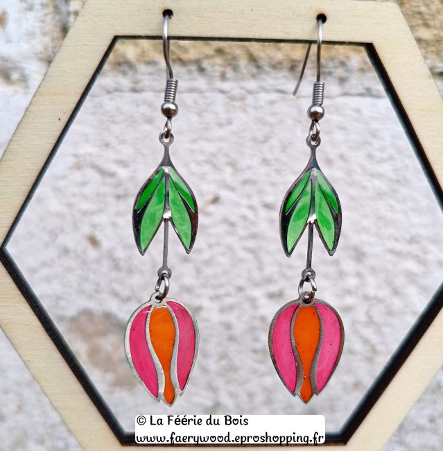 Les Tulipes oranges - Collection Vitrail - Boucles d'Oreilles by La Féérie du Bois - Cadeau Artisanal