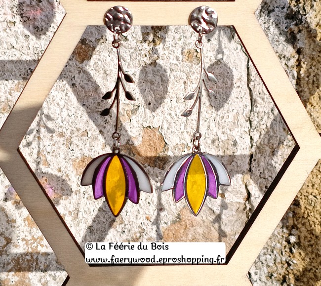 Fleur Lotus- Collection Vitrail - Boucles d'Oreilles by La Féérie du Bois - Cadeau Artisanal