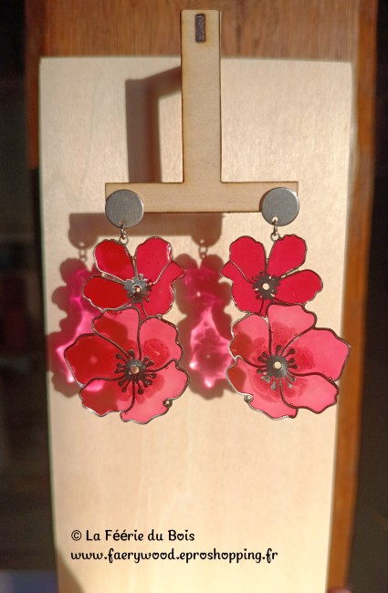 Les Coquelicots - Collection Vitrail - Boucles d'Oreilles by La Féérie du Bois - Cadeau Artisanal